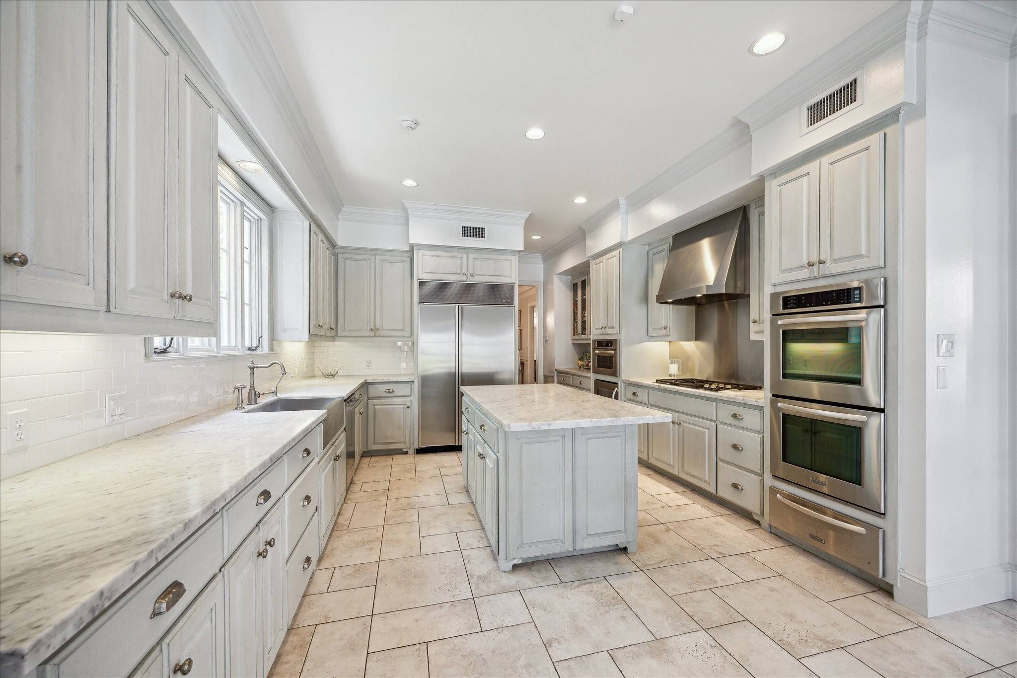 Regal River Oaks 4-5 Bedroom residence offering a dignified Lucian Hood design combining captivating curb appeal with impeccable scale, exceptional amenities, and numerous improvements in a highly coveted St. John's area location. Elegant Entry Hall opens to refined living spaces. Paneled Study/Library. Fabulous Formals. Wet Bar with climate-controlled Wine Vault. Gourmet Island Kitchen with marble countertops, stainless steel appliances, and Breakfast Room opens to a sizable Den. Primary Suite up with fireplace, separate baths with designated dressing rooms, and covered balcony overlooking the backyard oasis with swimming pool/spa. 3 Guest Suites. Third Floor Game Room. Elevator capable. Recent Roof (2024). Ample off-street parking with gated motor court leading to a 2-car Garage with Quarters above offering an additional 500+ sq. ft. of living space (per HCAD).